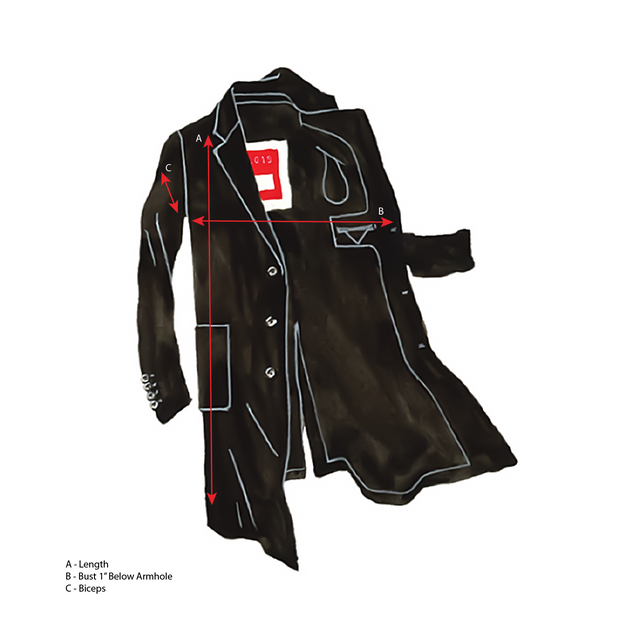 B - Bust 1” Below Armhole - S 112/ M 117/ L 122