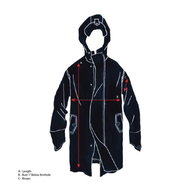 B - Bust 1" Below Armhole - S 123/ M 127/ L 132